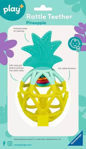 This is one fun fruit for baby! The Rattle Teether Pineapple has textured silicone leaves ideal for teething babies and to soothe those sore gums. The pineapple has an easy-grip body that is perfect for little ones to grasp and squish as they explore the different textures. Baby can shake the toy and will love the clattering sounds the rings inside make.