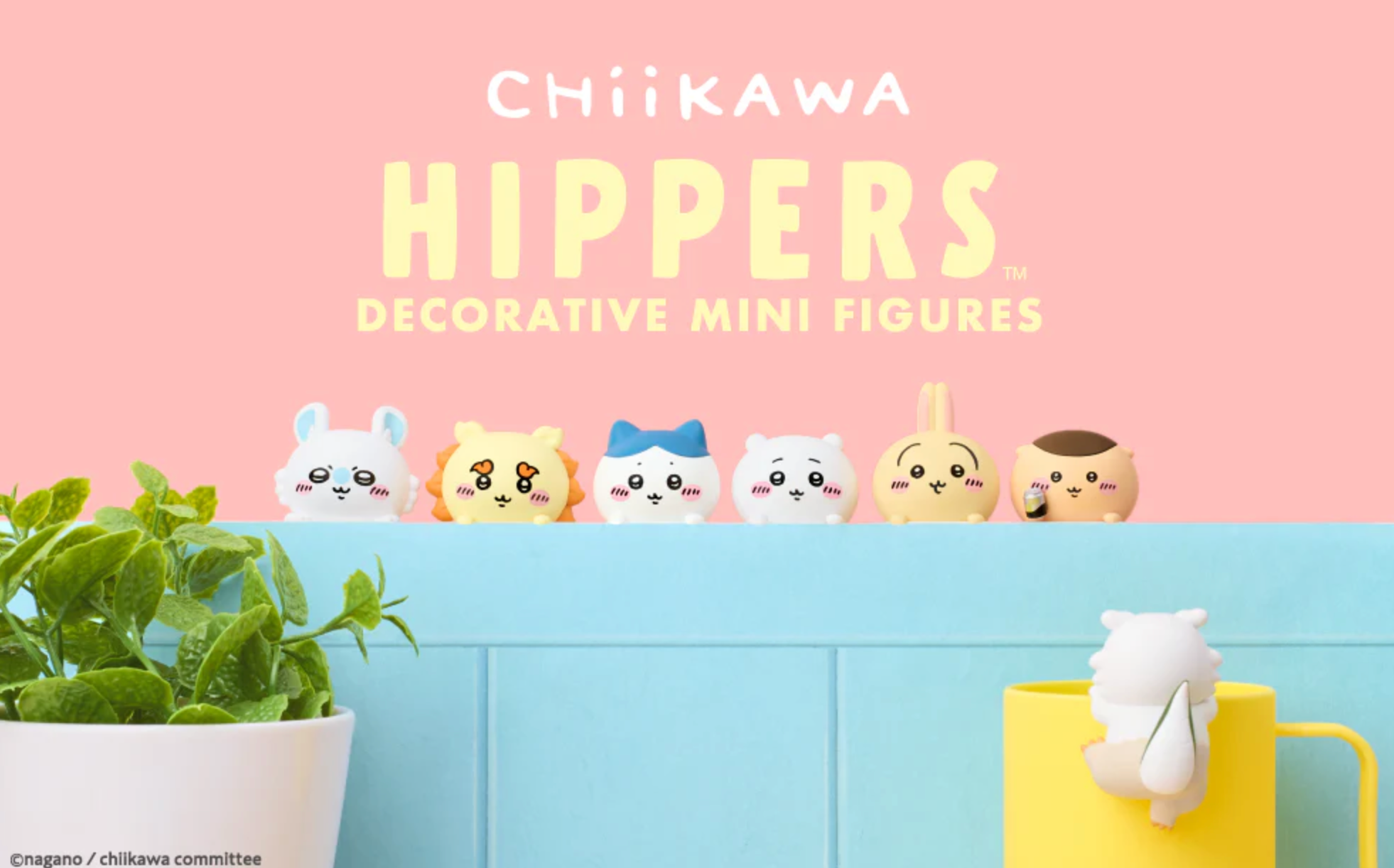 HIPPERS, a decorative self-adhesive mini figure line that makes every day items even cuter, now features iconic characters Chiikawa, Hachiware, Usagi, Momonga, Kurimanju, and Shisa from illustrator Nagano’s popular series CHiiKAWA! The series features seven different mini figure designs, including a Secret! Each figure is adorably round, and their little arms cling to your items from the front while their cute tails peek out from the back!