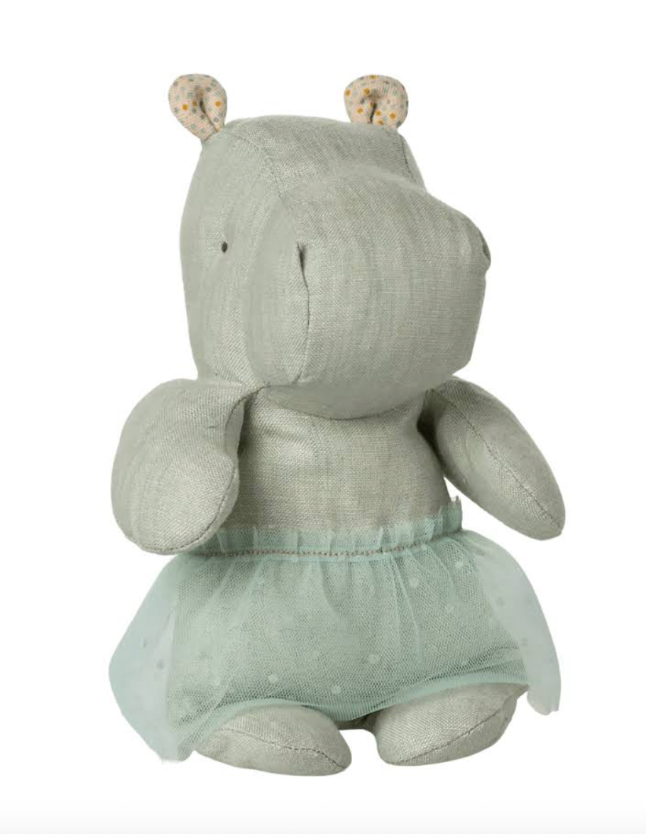 Maileg: Safari Friends Small Mint Hippo with Skirt is backordered and will ship as soon as it is back in stock.