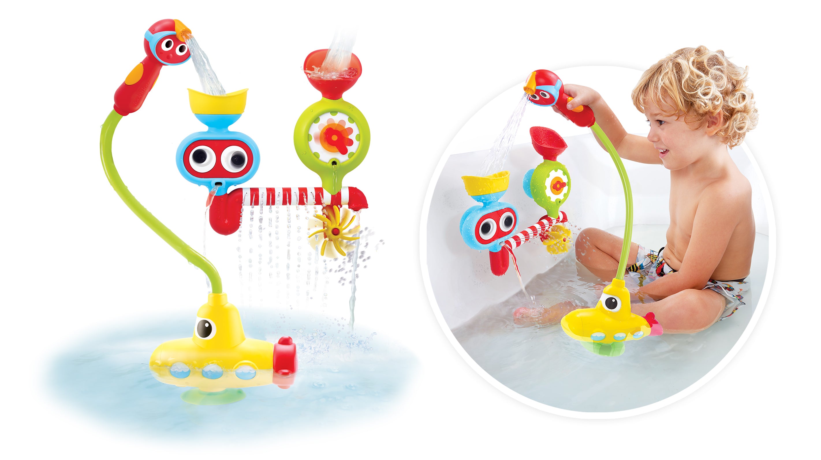 Water magically streams through the diver shower head especially designed for easy grip and activation by small hands.