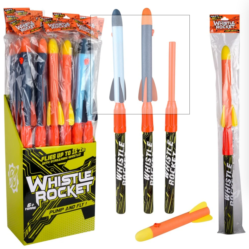 Pump and launch these whistle rockets sky high