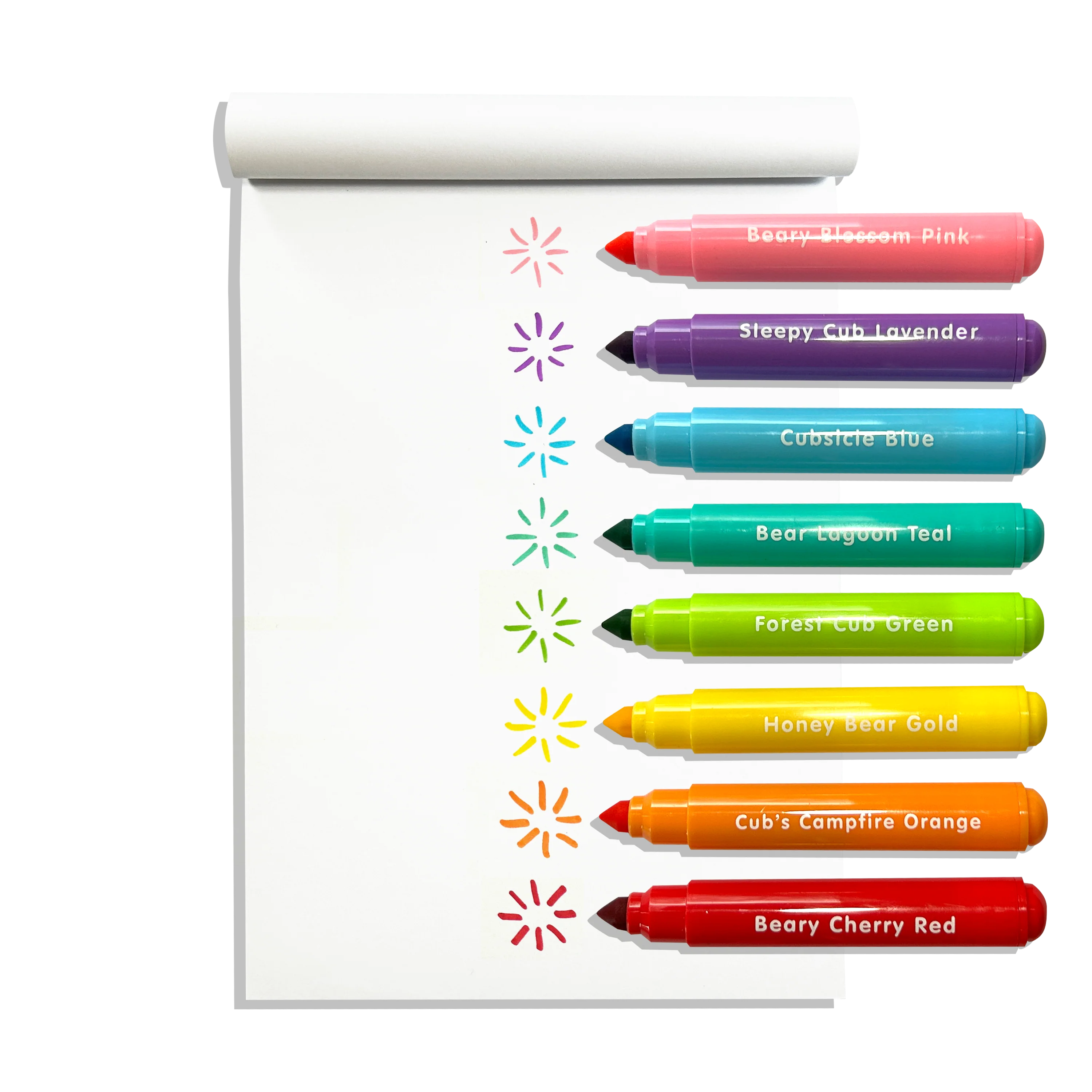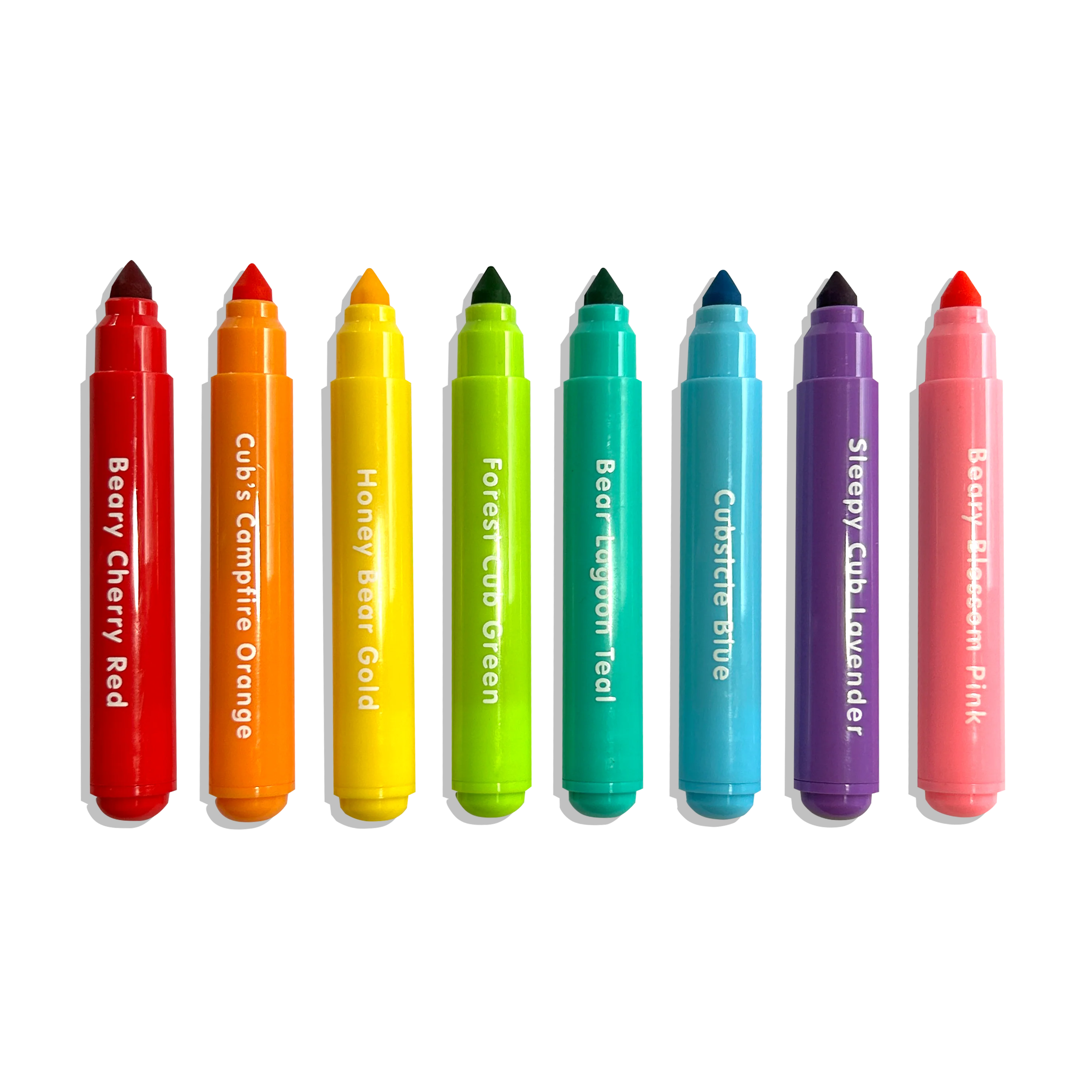 Crafted for both fun and function, these markers for kids are easy to clean—just a little soap and water removes any accidental marks from skin and most surfaces. The bear cub-inspired design adds an extra touch of charm, making them a delightful addition to any pencil case or art kit. Whether you're sketching, coloring, or working on school projects, the Cub Crew Washable Markers are ready to bring your ideas to life.