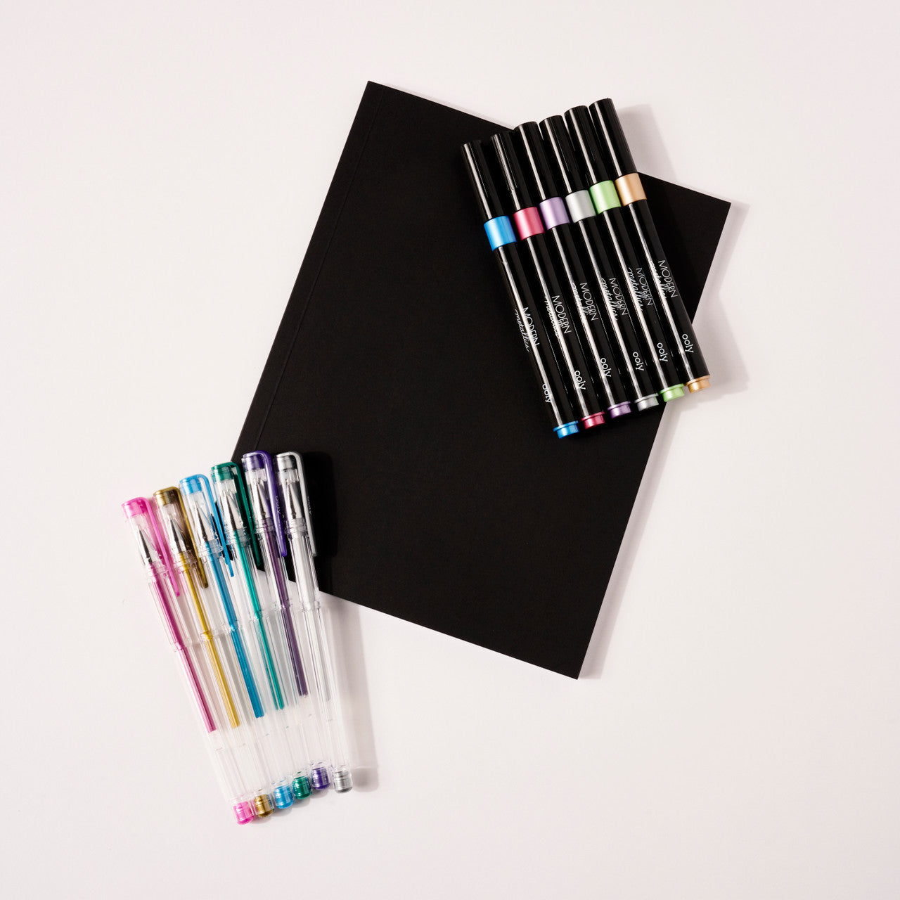 • Includes: 6 metallic ink markers, 6 metallic ink gel pens