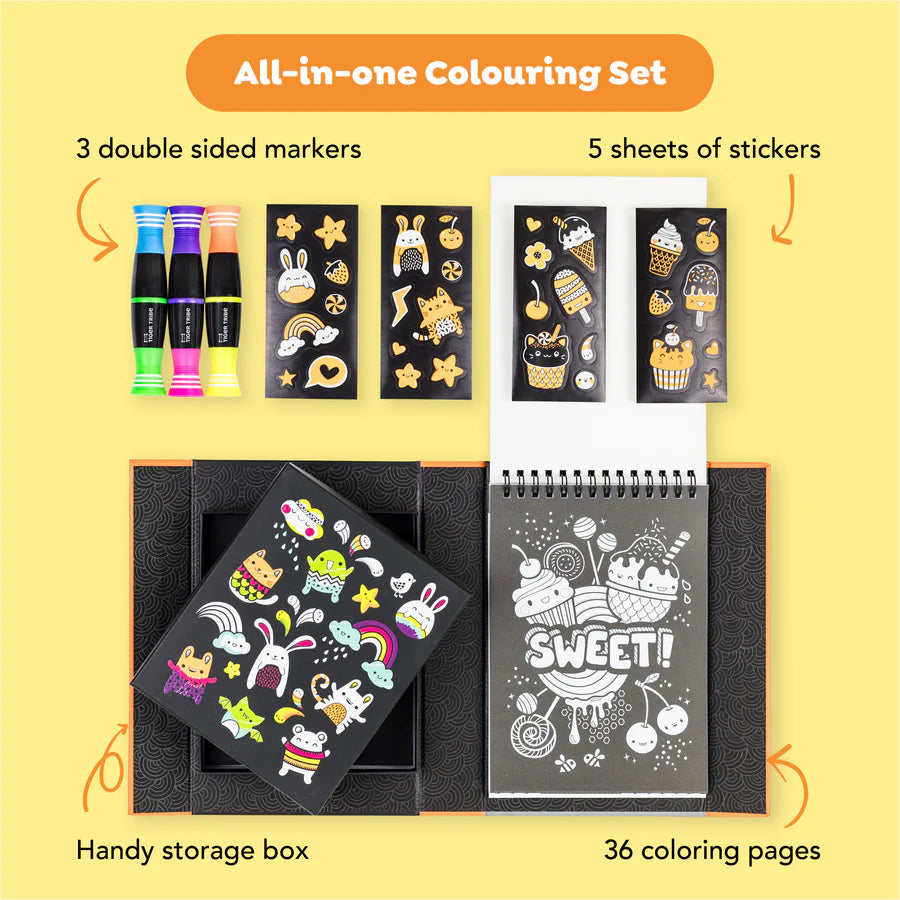 Designed for easy portable play, Tiger Tribe’s Coloring Sets provide a welcome alternative to screen time, promoting mindfulness, relaxation, and de-stressing effects. Each compact set is the ideal size to throw in your bag before you head out the door. Everything you need in one self-contained box, with a magnetic flap to keep contents safely stored.