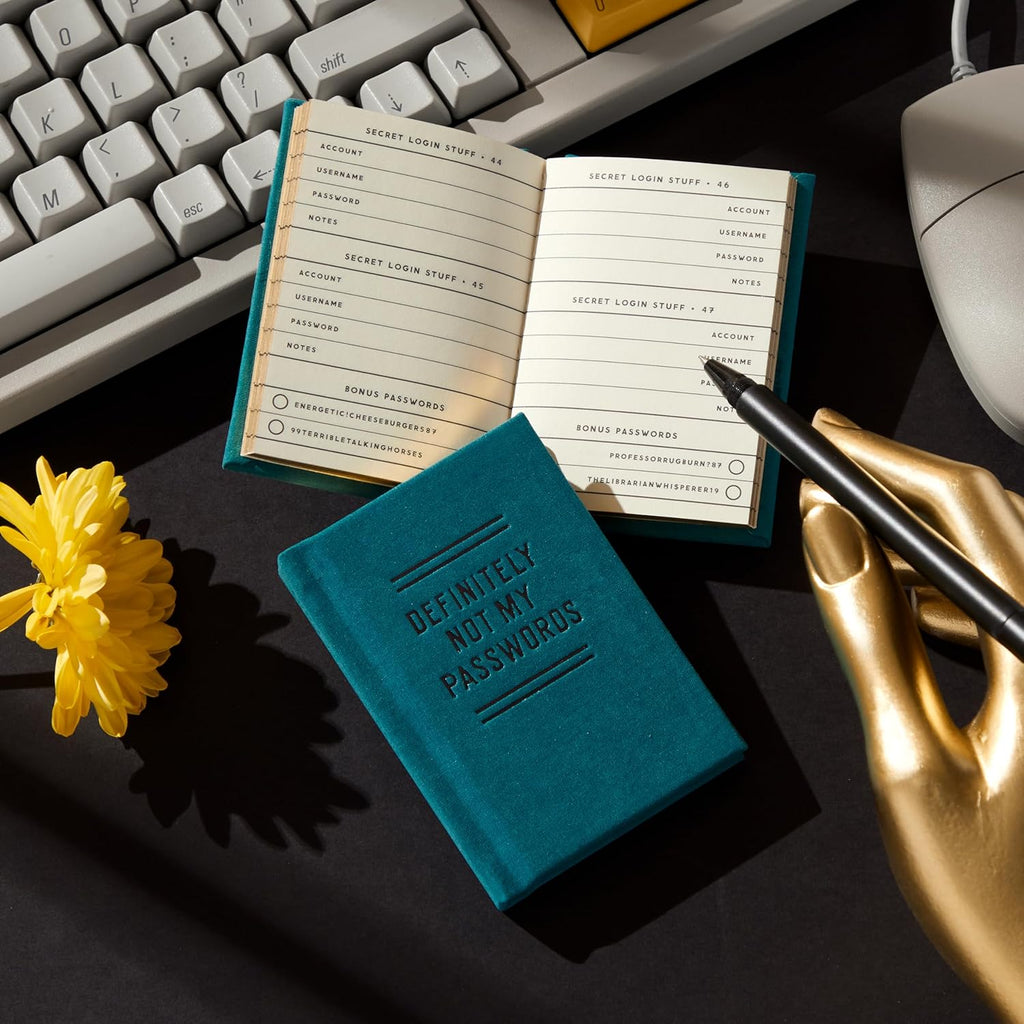 TINY PASSWORD DIARY - And by tiny…we mean really tiny. These 2.75” by 3.75” journals will help you remember the important passwords of your life–you know, like that old AOL email you only use for sale notifications. That’s right. Finally. The Definitely Not My Passwords – A Tiny Password Diary is here. Every page will include space to write down passwords and what they're used for. Think of all the passwords your grandchild will read as they flip through this window trying to figure out what inheritance you left them.