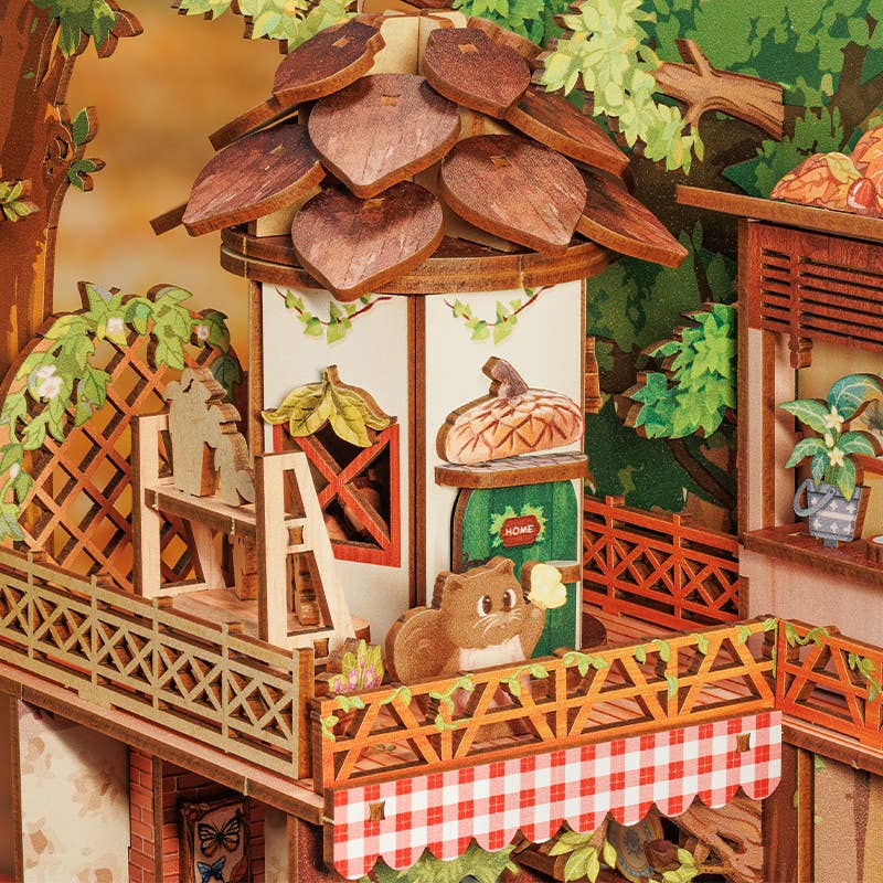 Introduce your customers to the Squirrel Collector Book Nook Kit. This whimsical woodland scene features a squirrel's cozy tree house turned nut shop, complete with rustic shelves and tiny acorns and walnuts. Perfect for adding a woodland-inspired touch to bookshelves, this kit offers hours of creative fun and makes an ideal gift for DIY enthusiasts and nature lovers. With high appeal, captivating design, and quality materials, it enhances store displays and ensures customer satisfaction.