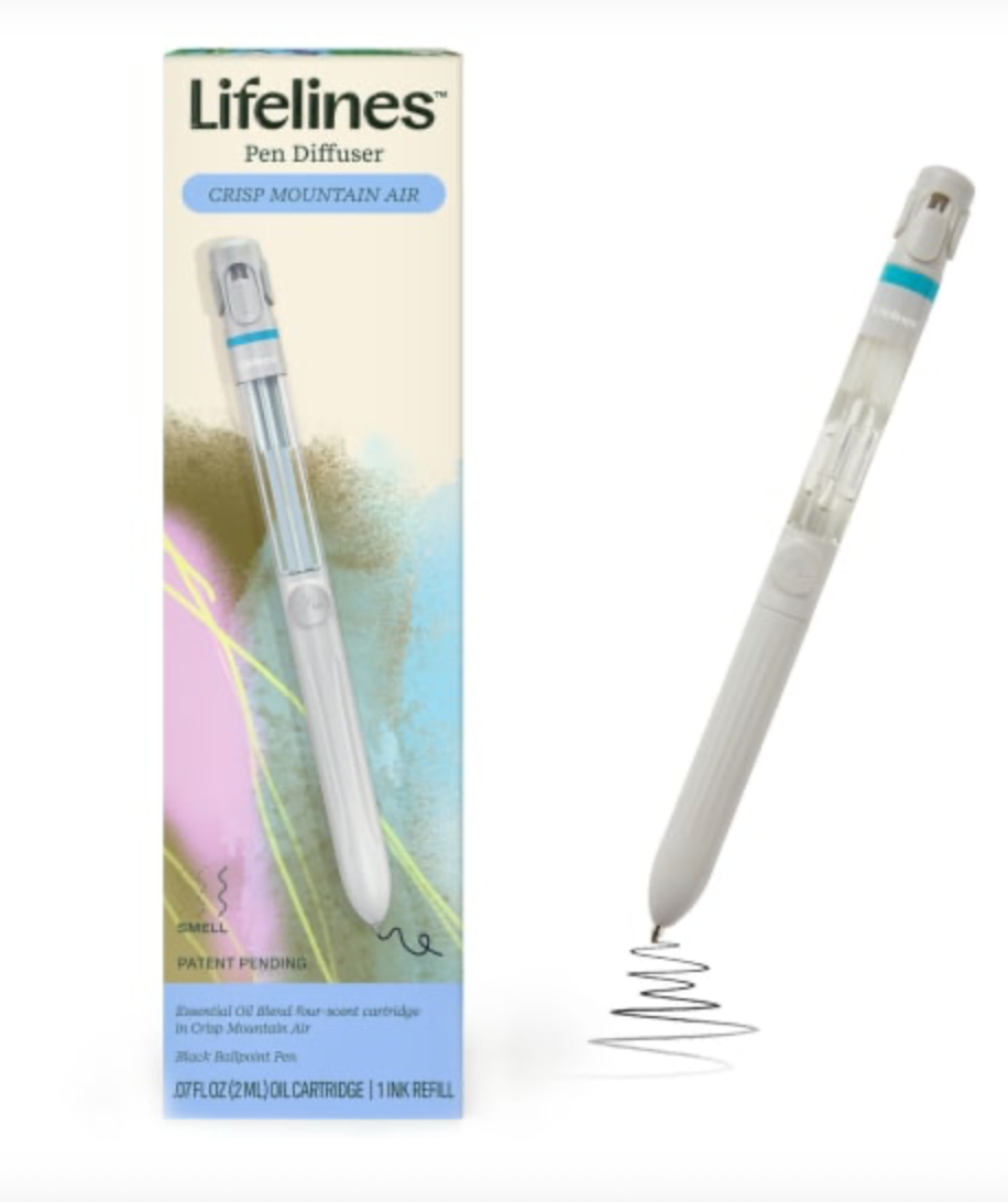 Keep your ideas flowing with a pen that diffuses delightfully invigorating scents as you write. Pen contains four Essential Oil Bends from our Crisp Mountain Air collection, featuring wild mint, peppermint, and rosemary. Simply lower the desired tab to select a single scent—or diffuse multiple blends at once to create a custom fusion!