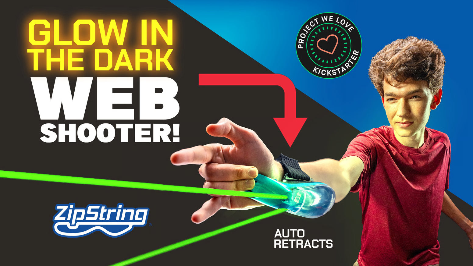 ZipString Aracna shoots and retracts a string loop at over 35 mph with the touch of a button. It's physics-defying movement and glow in the dark technology unlocks that superhero feeling we all have inside.